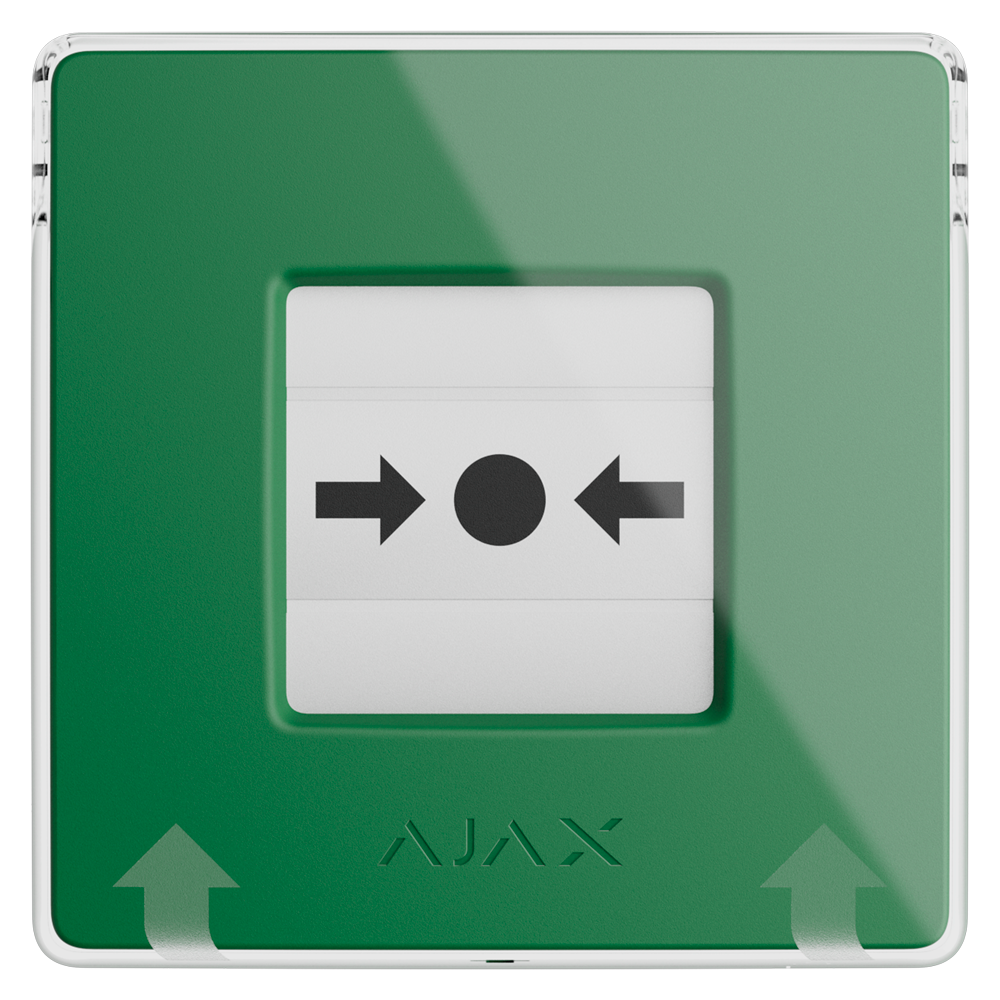 Bouton dalarme incendie manuel vert – Sans fil 868 MHz Jeweller – Bouton dalarme incendie ou activateur de scénario – Compatible avec la fonction dalarme interconnectée – Transmission de lalarme à lARC (configurable) – Alimentation 2 piles CR123A