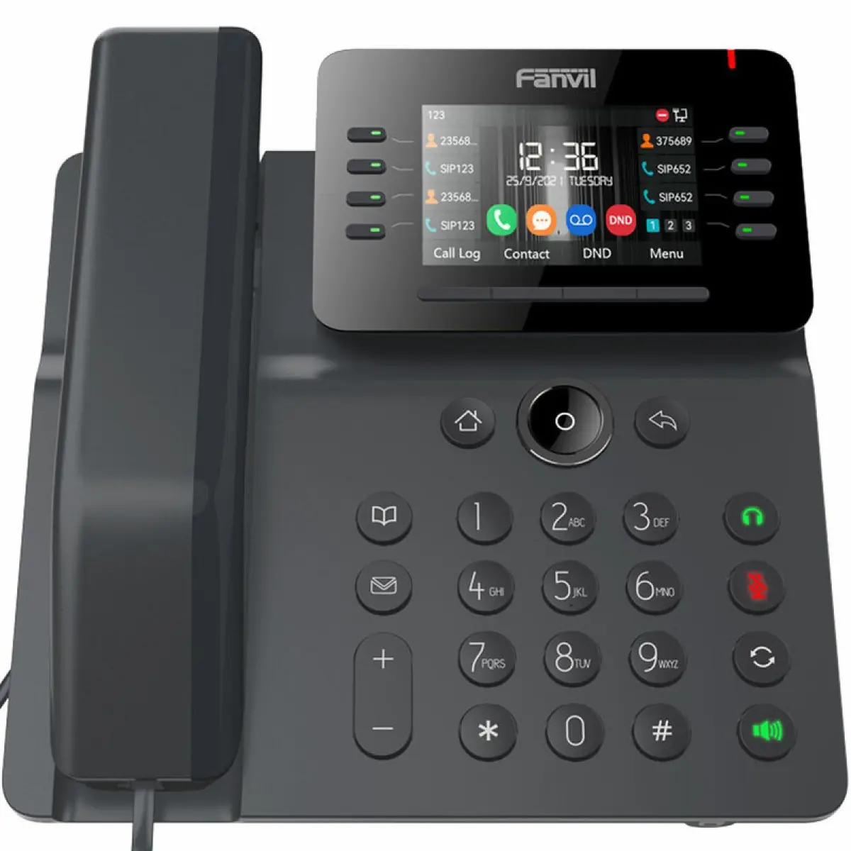 Le Fanvil V64 est un téléphone IP professionnel conçu pour allier confort visuel et connectivité totale. Avec son design moderne et ses capacités sans fil natives, il s’adapte parfaitement aux bureaux de direction et aux espaces de travail connectés sans encombrement de câbles.